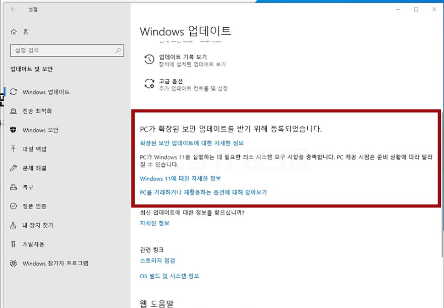 - 이제 '업데이트 확인' 버튼 근처에 **"ESU(확장 보안 업데이트)에 등록"**과 비슷한 링크나 버튼이 보일 겁니다. (아직 안 보인다면 곧 생길 예정입니다.)
